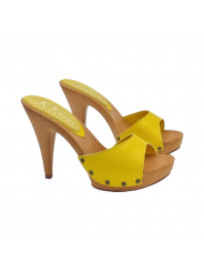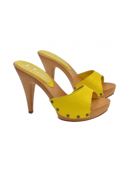 Zuecos de mujer con tacón de 11 cm y parte superior de piel auténtica