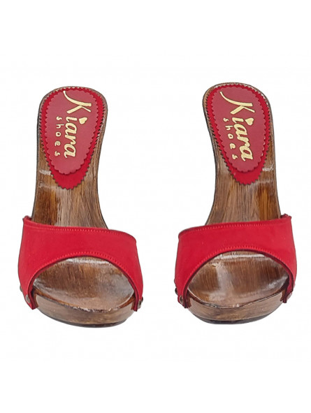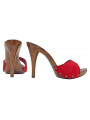 Zueco de mujer con tacón de 12 cm y pala de ante rojo.