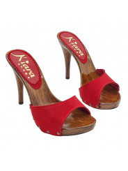 Zuecos de mujer con tacón 12 y parte superior de piel roja.