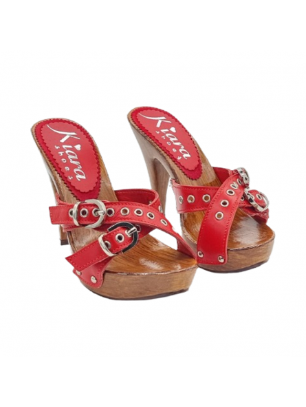 ZUECO CON BANDAS CRUZADAS Y HEBILLAS PLATA