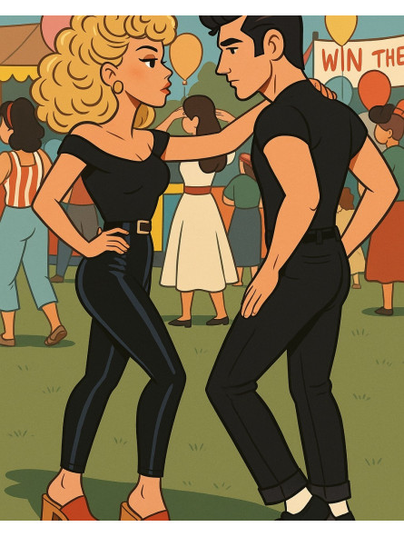 Casi idénticos a los que lleva Sandy en nuestro diseño, estos zuecos son perfectos para recrear un look retro de fiesta americana de los años 50, con ese toque femenino y sensual que nunca pasa de moda.
