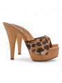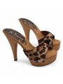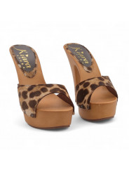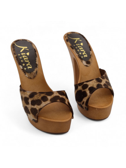 Zuecos antiarañazos (MOU) con base de efecto de madera, correa de cuero con apariencia de animal, cuero real - plataforma de tacón de 13 cm + 4 cm. Estable y cómodo hecho completamente en ITALIA. Procesamiento artesanal.