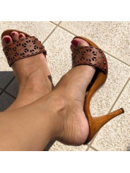 ZUECOS PARA MUJER DE CUERO CON CORTE LÁSER Y TACÓN ALTO