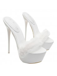 Sandalias sexys fabricadas en charol blanco con plateau de 6 cm y tacón de aguja de 17,5 cm de altura