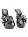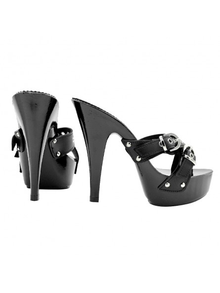 ZUECOS NEGROS BANDAS TRENZADAS Y HEBILLAS PLATA