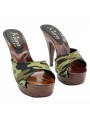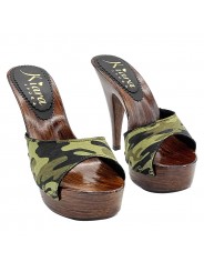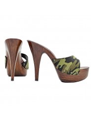 ZUECO CON BANDA EN TEJIDO CAMUFLAJE Y TACÓN ALTO
