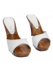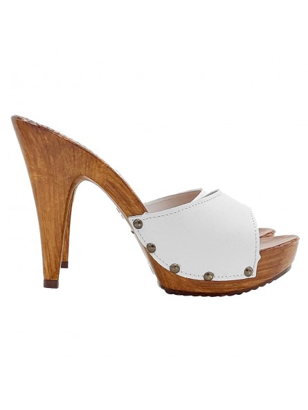 ZUECO DE PIEL BLANCO CON TACÓN DE 11 CM