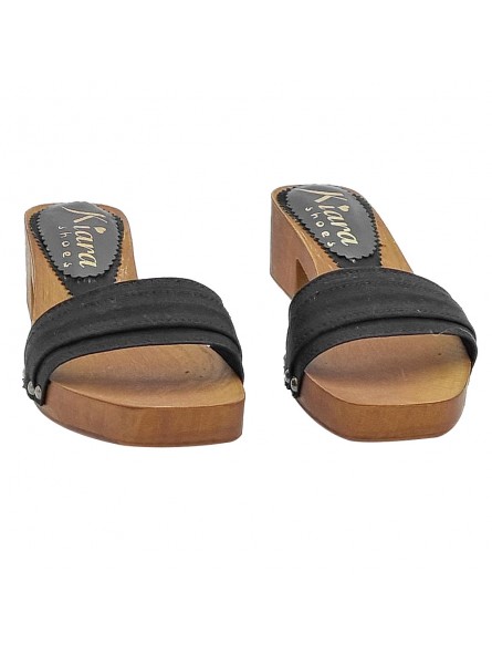 ZUECOS BAJOS NEGROS CON DOBLE BANDA DE TEJIDO