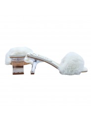 ZUECOS BLANCOS CON PELO Y TACÓN TRANSPARENTE