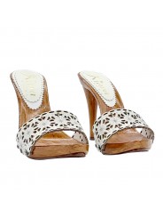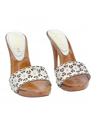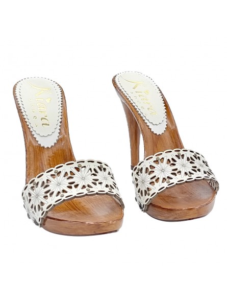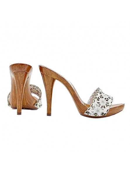 ZUECO TACÓN PIEL BLANCO LASERADO
