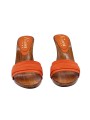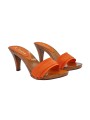 Zuecos de Mujer con Tacón de 9 cm – Tira Naranja y Suela con Efecto Madera | Hechos en Italia