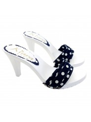 MULE CÓMODO BLANCO BANDA POIS AZUL