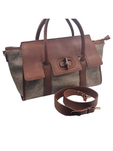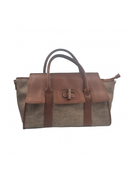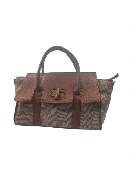 Sac Élégant Marron avec Insert en Tissu Tweed
