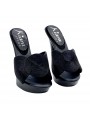 Tige noire en tissu noir et talon haut de 13 cm + plateforme de 3 cm, semelle intérieure rembourrée