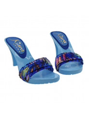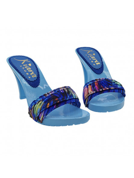 Sabots bleu clair avec talon de 9 cm et bande boréale - Fabriqués en Italie