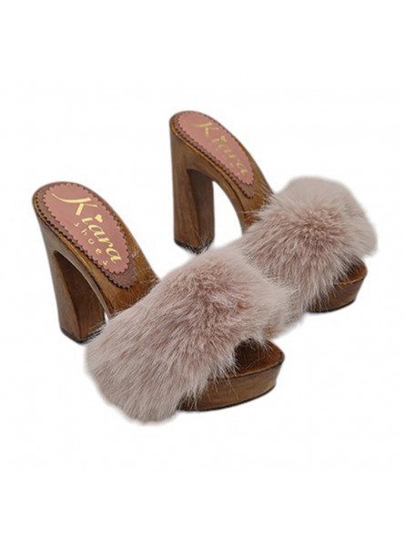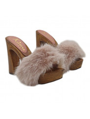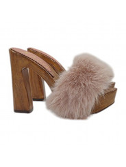 SABOTS À TALON DE 12,5 CM | FOURRURE ROSE