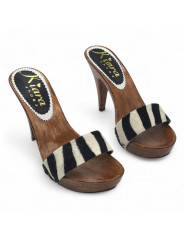 Sabots Artisanaux avec Tige en Cuir Imprimé Zèbre – Talon de 11 cm