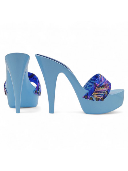 Mule sexy en tissu décoré et structure bleu clair | Talon de 13 cm - Fait main
