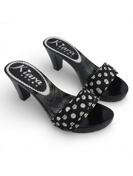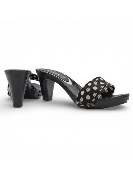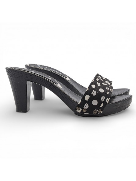 Sabots femme avec base noire et bride à pois – Made in Italy