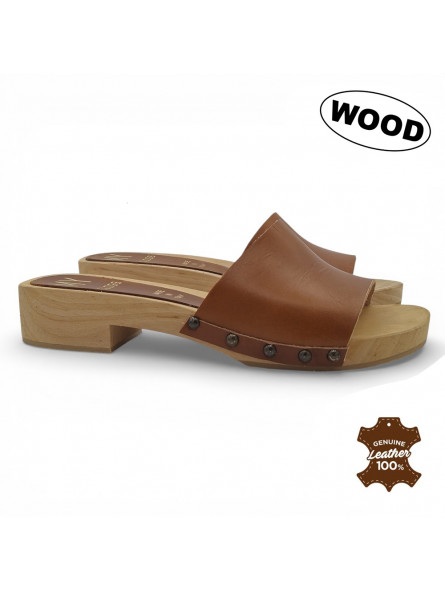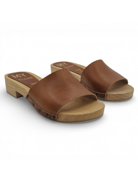 Sabots artisanaux avec bride en cuir véritable et talon confortable