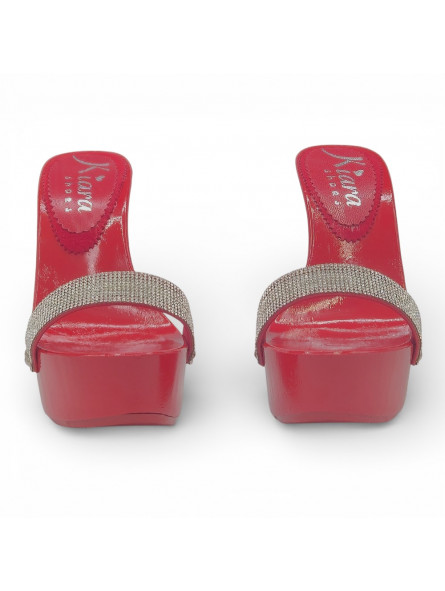 Sabots Rouges avec Bande en Strass – Talon 13 cm | Made in Italy