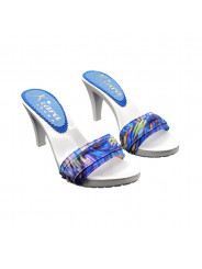 Sabots Blancs Laqués, avec bride colorée effet boréal, talon de 9 CM. Stables et confortables, fabriqués en ITALIE. Fait main.