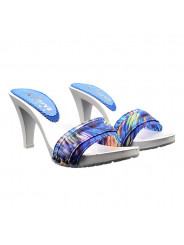 Le talon de 9 cm offre une silhouette raffinée, tandis que la semelle robuste assure une stabilité optimale sur différentes surfaces. La bride multicolore est un détail moderne qui attire l'attention, faisant de ces sabots un accessoire incontournable pour ceux qui recherchent un style audacieux et tendance. Le logo doré Kiara apporte une touche de luxe et de confort, idéal pour être porté pendant de longues heures sans fatiguer les pieds.
