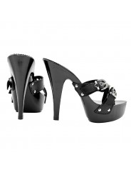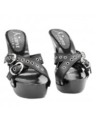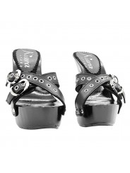 SABOTS NOIR AVEC BANDES TRESSÉES ET BOUCLES ARGENTÉES