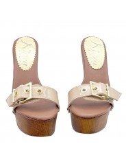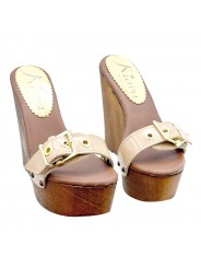COMPENSÉE AVEC BANDE BEIGE EN CUIR VERNI ET TALON HAUT