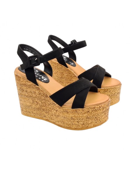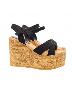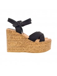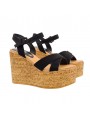 SANDALES COMPENSÉES EN DAIM NOIR
