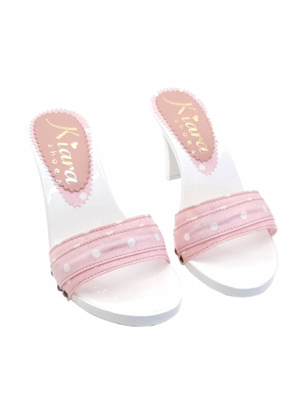 SABOTS BLANCS CONFORTABLES AVEC BANDE À POIS ROSE