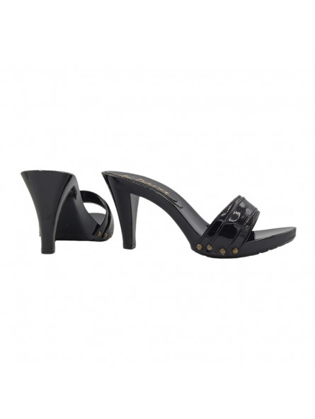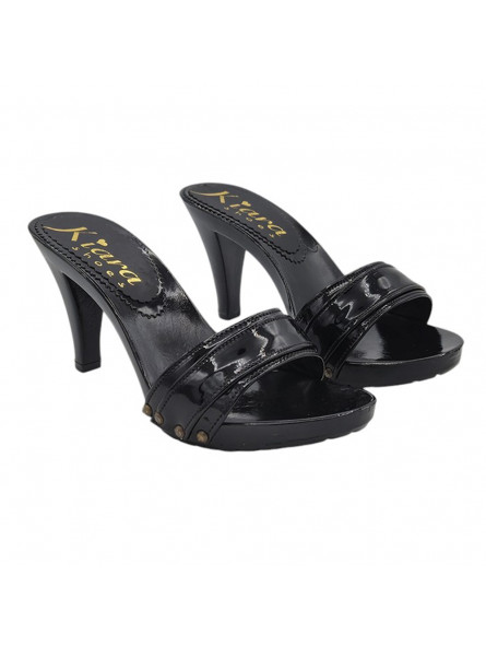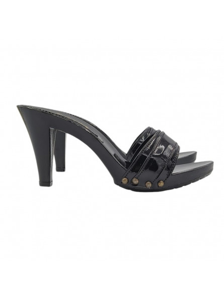 Zoccoli neri laccati con tacco 9 cm dal 35 al 42 - Eleganza e Grinta per Ogni Occasione