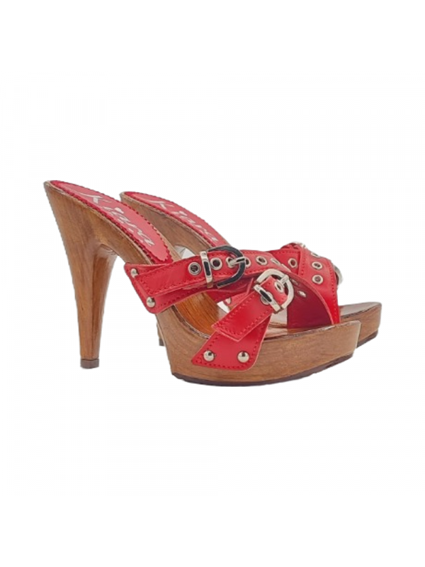 Zoccoli con tacco alto e base effetto legno