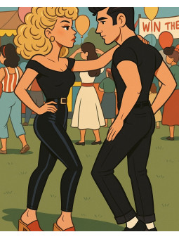 Praticamente identici a quelli indossati da Sandy nel nostro artwork, questi zoccoli sono perfetti per ricreare un look retrò da festa americana anni ’50 — con quel tocco femminile e sensuale che non passa mai di moda.