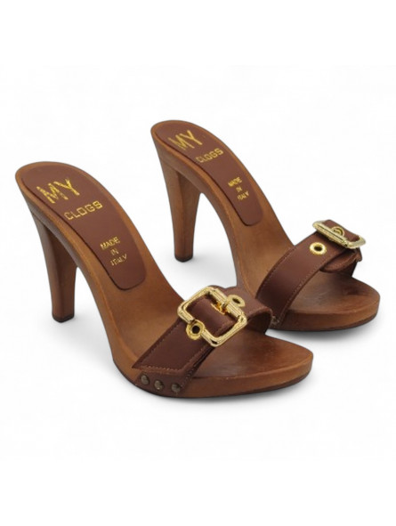 ZOCCOLI DONNA CON FASCIA IN CUOIO & FIBBIA | TACCO 11 CM