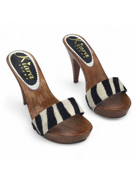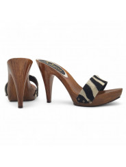 Zoccoli Artigianali con Tomaia in Pelle Zebrata – Tacco 11 cm