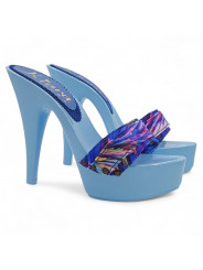 Zoccoli sexy in tessuto decorato e struttura azzurra | Tacco 13 cm - Handmade