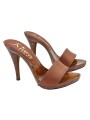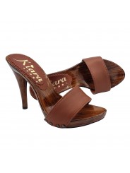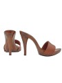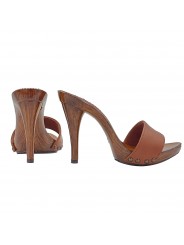 Zoccolo da donna con tacco 12 cm. Tomaia in pelle marrone foderata in pelle. Stabile e comodo realizzato interamente in ITALIA. Lavorazione artigianale.