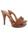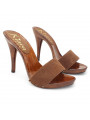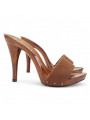 Zoccolo da donna con tacco 12 cm. Tomaia in camoscio marrone. Stabile e comodo, realizzato interamente in ITALIA. Lavorazione artigianale.